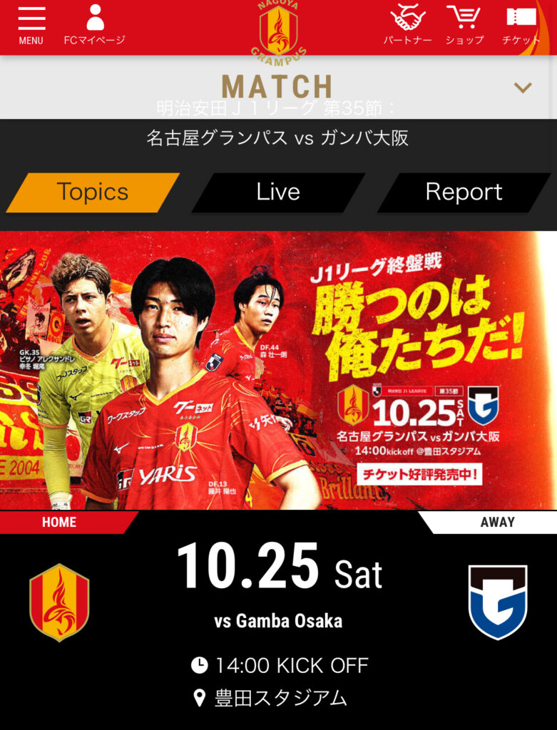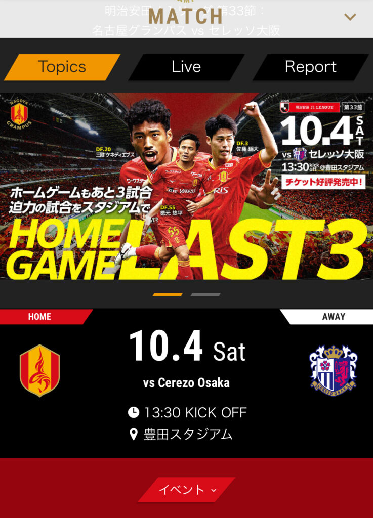 名古屋グランパスエイト VS ガンバ大阪